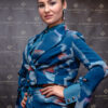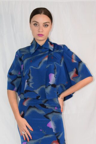 Giacca corta a doppio petto in lana misto seta interamente foderata con spacco manica davanti e bottoni gioiello